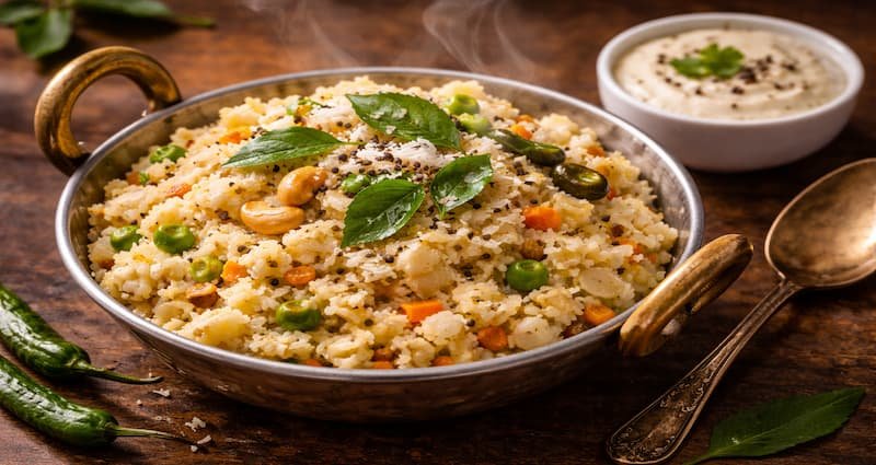 Cook for 3-4 minutes until the upma reaches a thick, porridge-like consistency. Add vegetables like peas, carrots, and beans for extra nutrition. Serve with coconut chutney or a pickle.